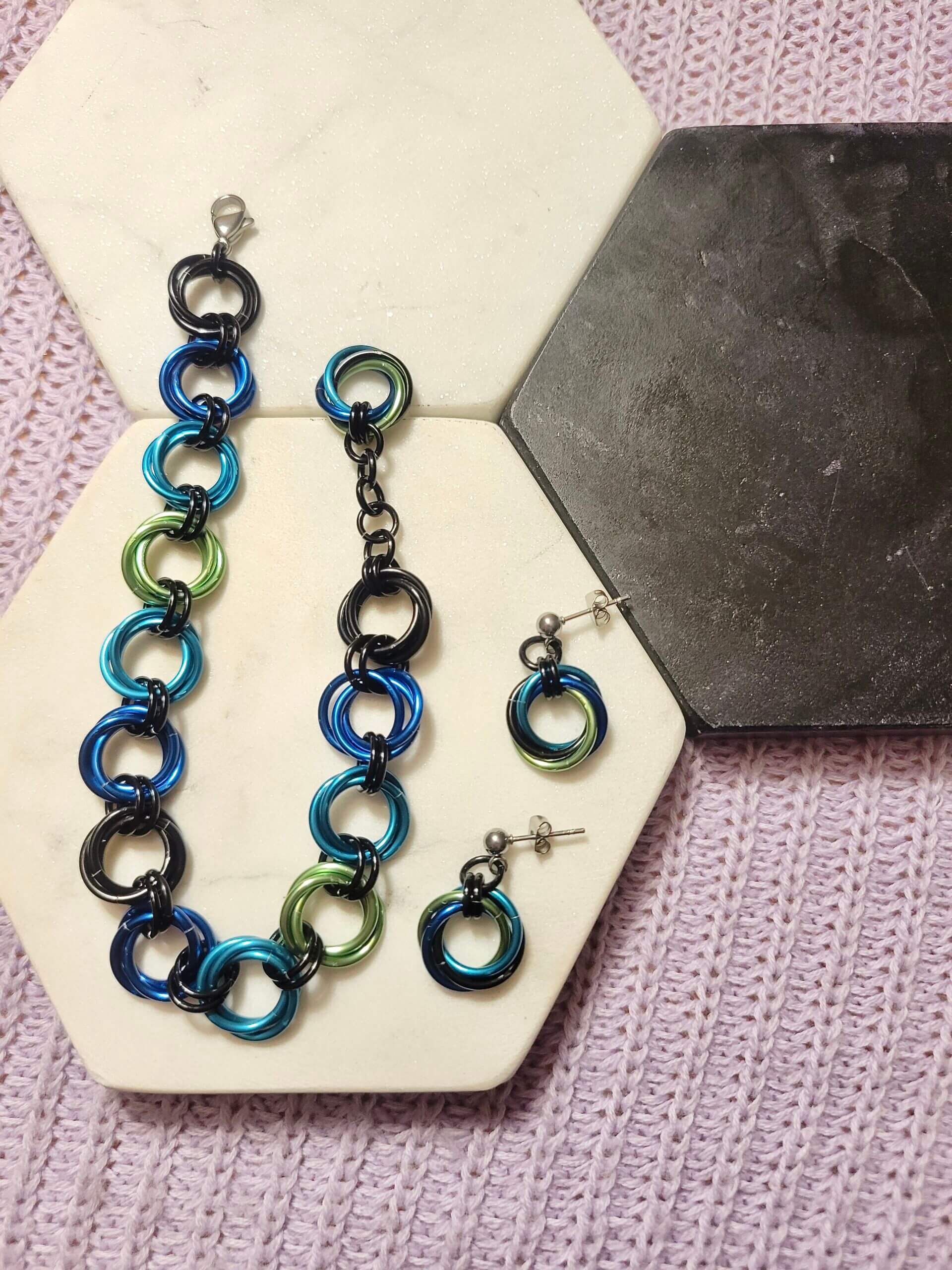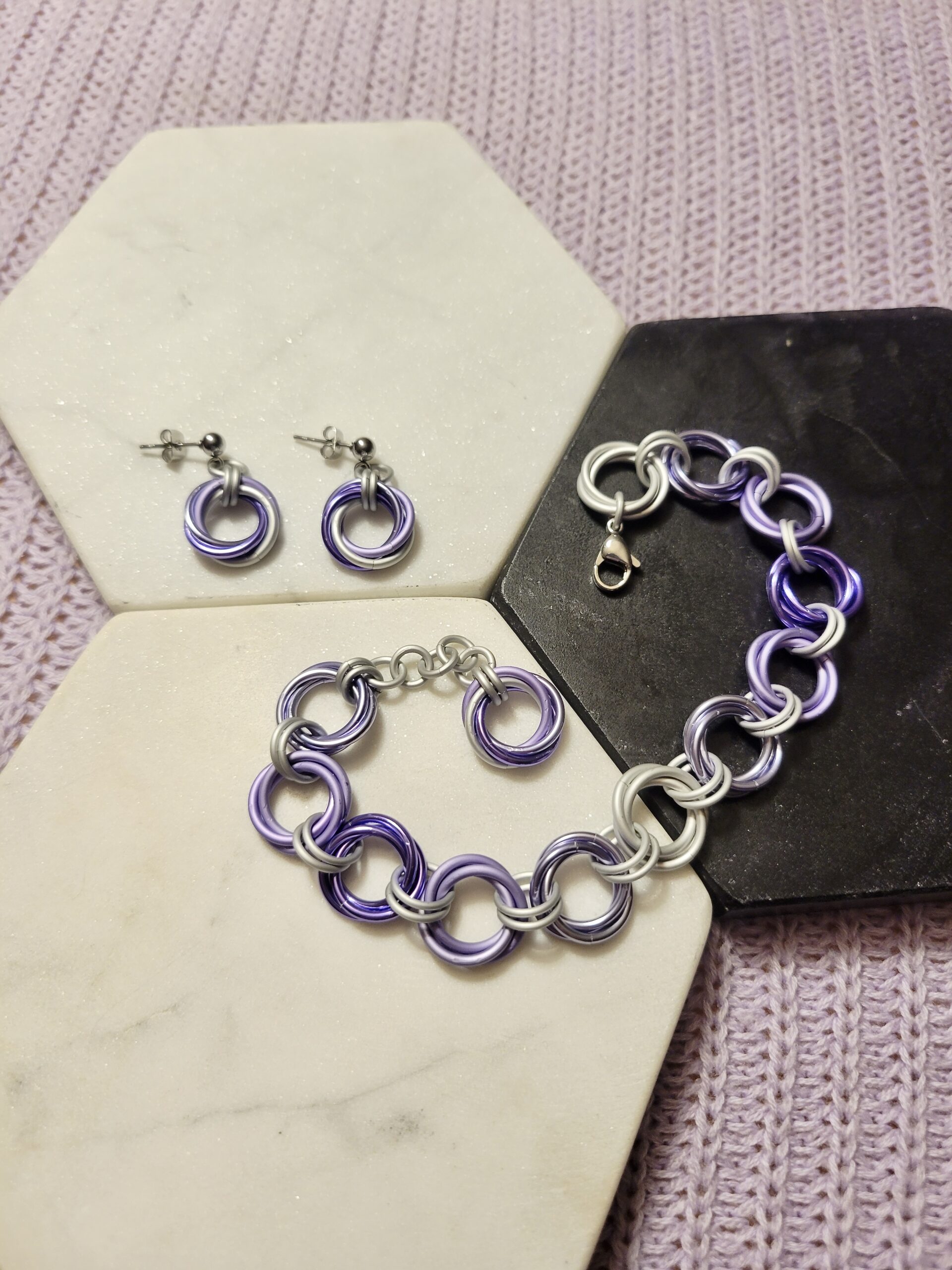 - Custom lightweight Aluminum chainmaille earrings and bracelet set made by you!