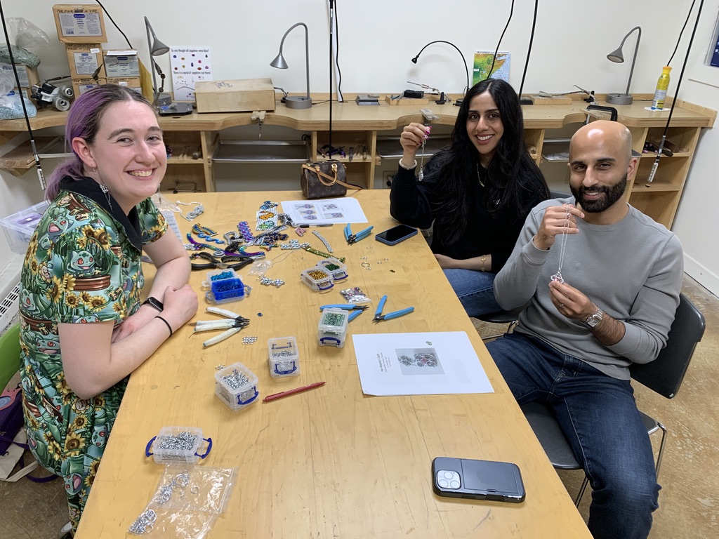 Pick your favorite colors and make the set match, or make separate pieces! Every student will leave with a completed pair of earrings AND bracelet ready to wear or gift to someone special in your life. Take the class solo, or sign up with friends/family for a fun night out! No torches or hammers involved in this class, which makes it perfect for beginners and more experienced makers looking to learn a new skill!