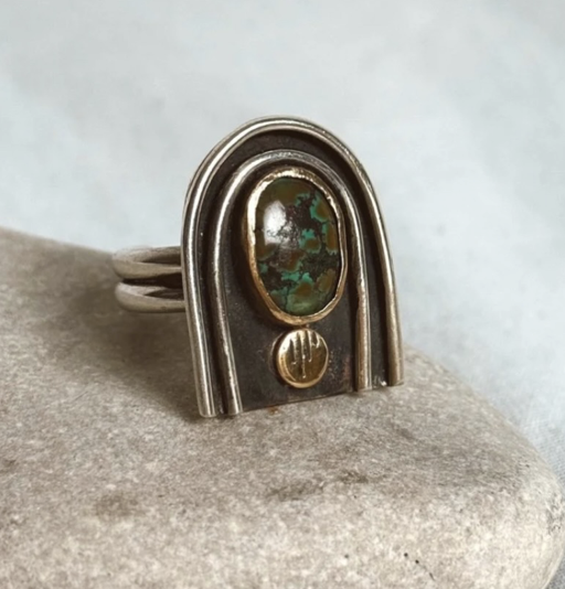 Included Materials – All metal materials and stones are included in this workshop price, with the option of a silver or brass backplate for a mixed metals look. Each student will receive a 1×1 inch backplate, 3 inches of 16 gauge wire, and a 16” or 18” sterling silver or gold fill box chain (for a pendant) or 8 gauge half round wire for 1 ring band. Choose all sterling, or mix and match for a two-toned look!