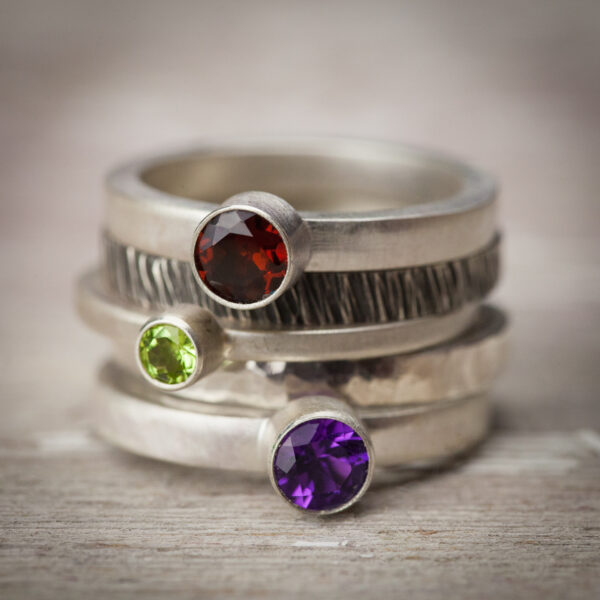Description:Use rectangular wire to make a set of stylish stackers. Add tube-set gemstones to three and forge cool textures onto two spacer rings. This class will give you excellent practice in ring forming and soldering as you shape and solder ring after ring. You can try our “secret weapon” tool – the ring bender – that makes forming the wire easy. Learn a production-style coiling method for shaping several rings at once. To solder, use the home-friendly butane torch or try your hand at our mixed-gas station – a professional torch that’s a step up from the butane torch. Leave feeling confident in your soldering skills and with a fingerful of stackers!
